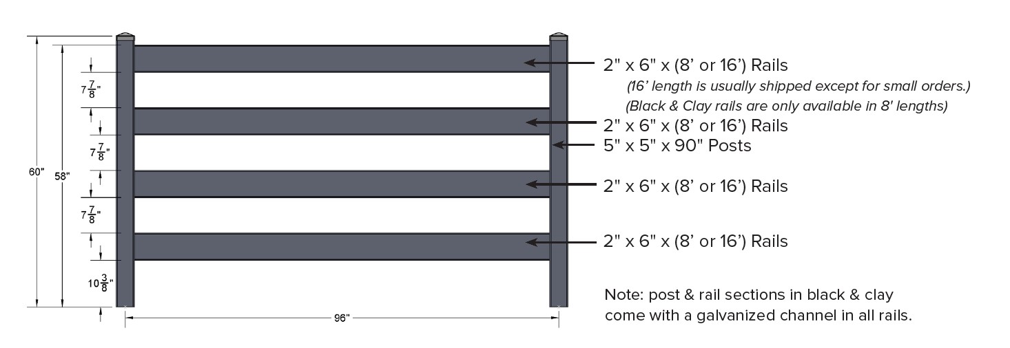 SOP 2" x 6" 4-Rail Post & Rail Fence Line Post Black2" x 6" 4-Rail Post & Rail Fence Line Post BlackMFG: Superior Outdoor ProductsSFC4R2X6LPBVinyl fencing is made to order from components. Typical lead times are 7-10 days. $57.39 / Each Details...