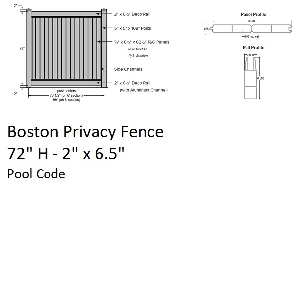 SOP Boston Privacy Fence 6' H x 8' W Section AlmondBoston Privacy Fence 6' H x 8' W Section Almond - Pool CodeAvailable Stock: 5MFG: Superior Outdoor ProductsSFPRBO7296A $232.06 / Each Details...