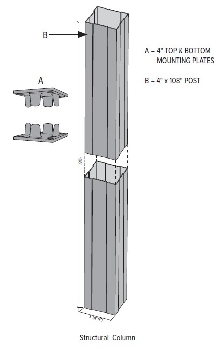 KFR 4" x 108" Keylink Porch Post Matte Black 21,000# Max.