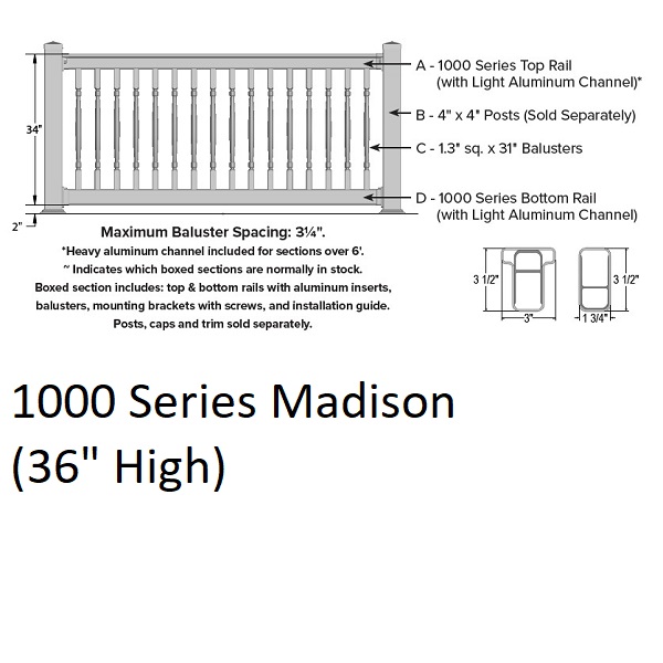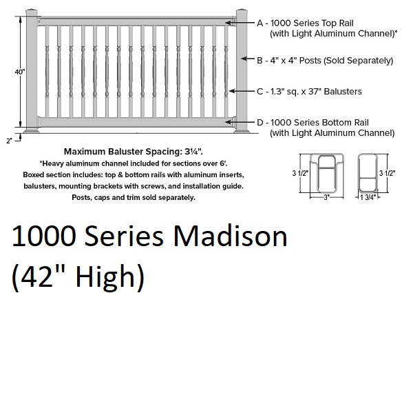 SOP 1000 Series Madison Level Section 3-1/2' x 6' WhiteSOP 1000 Signature Series Madison Level Section 3-1/2' x 6' White MFG: Superior Outdoor ProductsSR1MAL42X6WNon-stock vinyl railings average a 3-4 week lead time. $305.50 / Each Details...