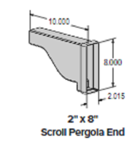 SOP 2" x 8" Vinyl Scroll Pergola Ends AlmondSOP 2" x 8" Vinyl Scroll Pergola End AlmondAvailable Stock: 16 / EachMFG: Superior Outdoor ProductsSPE2X8A $27.17 / Each Details...