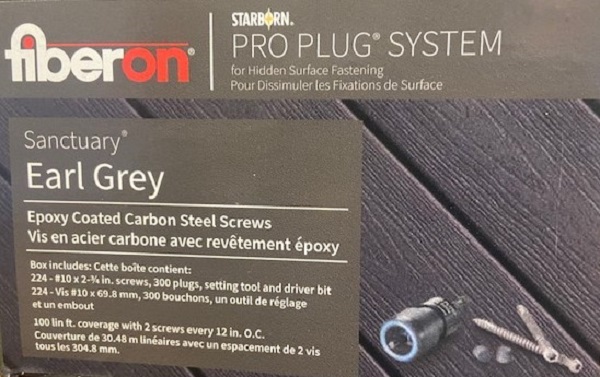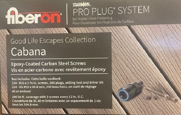 Fiberon Pro Plug System 100 ln Ft (Shaded Cay)224 Screws, 300 PlugsMFG: Fiberon DeckingPRPLFISC100Temporarily out of stock. Call for lead time. $116.38 / Each Details...