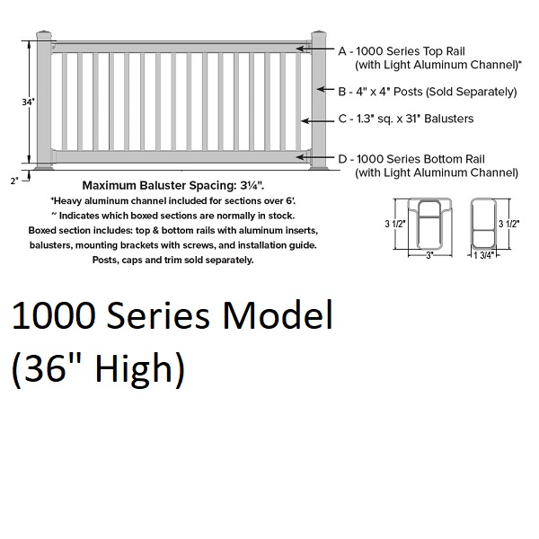 SOP 1000 Series Model Stair Section 3-1/2' x 6' AlmondSOP 1000 Signature Series Model 32°-36° Stair Section 3-1/2' x 6' Almond MFG: Superior Outdoor ProductsSR1MOS42X6ANon-stock vinyl railings average a 3-4 week lead time. $190.54 / Each Details...