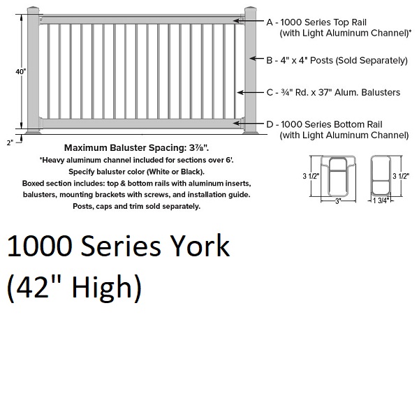 SOP 1000 Series York Level Section 3-1/2' x 4' WhiteSOP 1000 Signature Series York Level Section 3-1/2' x 4' White, Baluster Options: Black, White (Add baluster color in checkout) MFG: Superior Outdoor ProductsSR1YOL42X4WNon-stock vinyl railings average a 3-4 week lead time. $203.65 / Each Details...