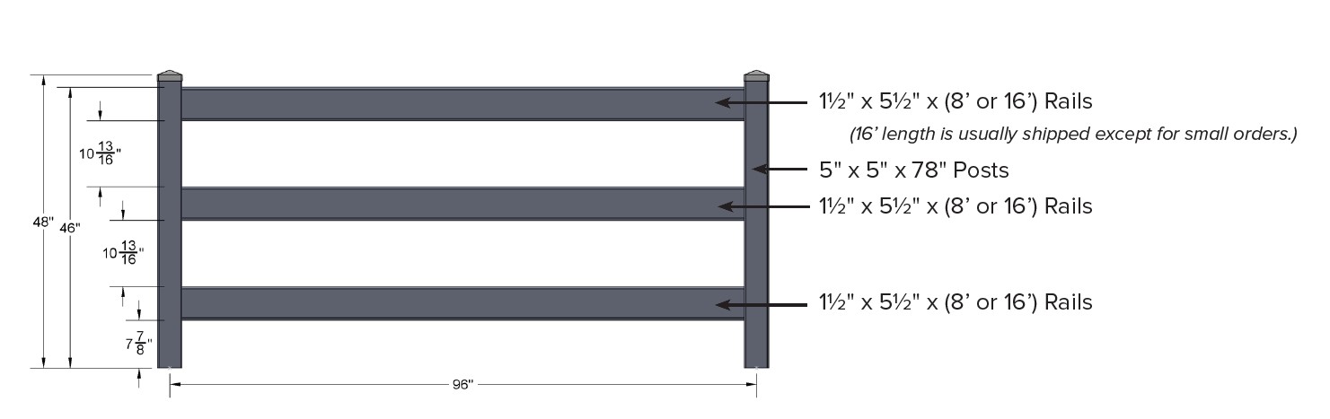 /Product Catalog/Fence/SOP- Vinyl/Rail fence/3 Rail/1-1/2x 5-1/2/SOP 1-1/2" x 5-1/2" 3-Rail Fence Section Almond