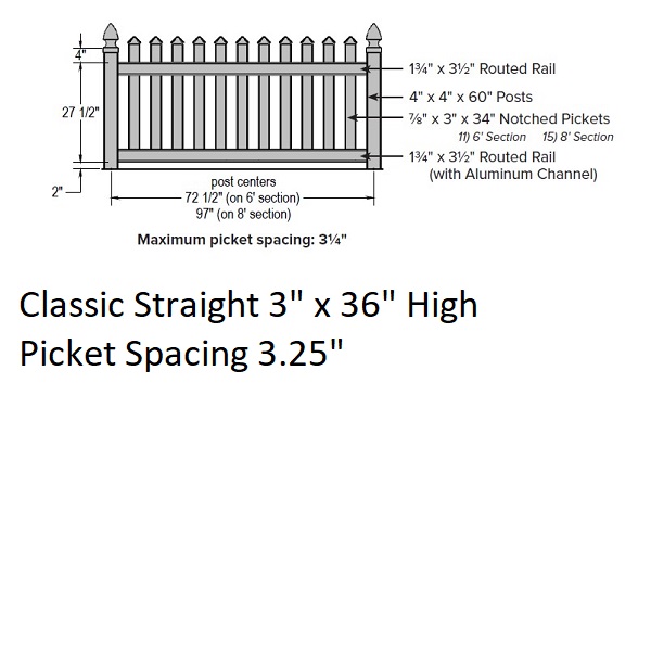 3" Classic Straight Picket Fence 3' H x 8' W Section Almond