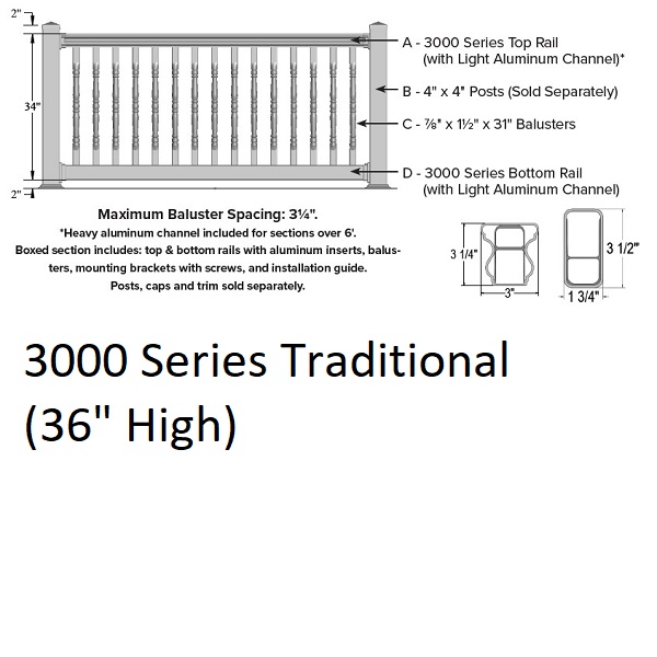 SOP 3000 Series Traditional Stair Section 3' x 8' WhiteSOP 3000 Signature Series Traditional 32°-36° Stair Section 3' x 8' White MFG: Superior Outdoor ProductsSR3TRS36X8WNon-stock vinyl railings average a 3-4 week lead time. $379.69 / Each Details...