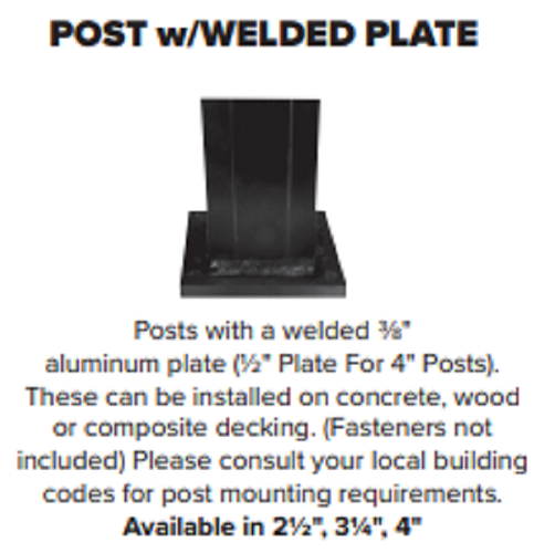 Keylink 4" x 38" Post w/Welded Plate Matte BlackKeylink 4" x 38" Post w/Welded Plate Matte BlackMFG: KeylinkKPWP438MBLNon-stock aluminum parts average a 3 week lead time. $147.24 / Each Details...