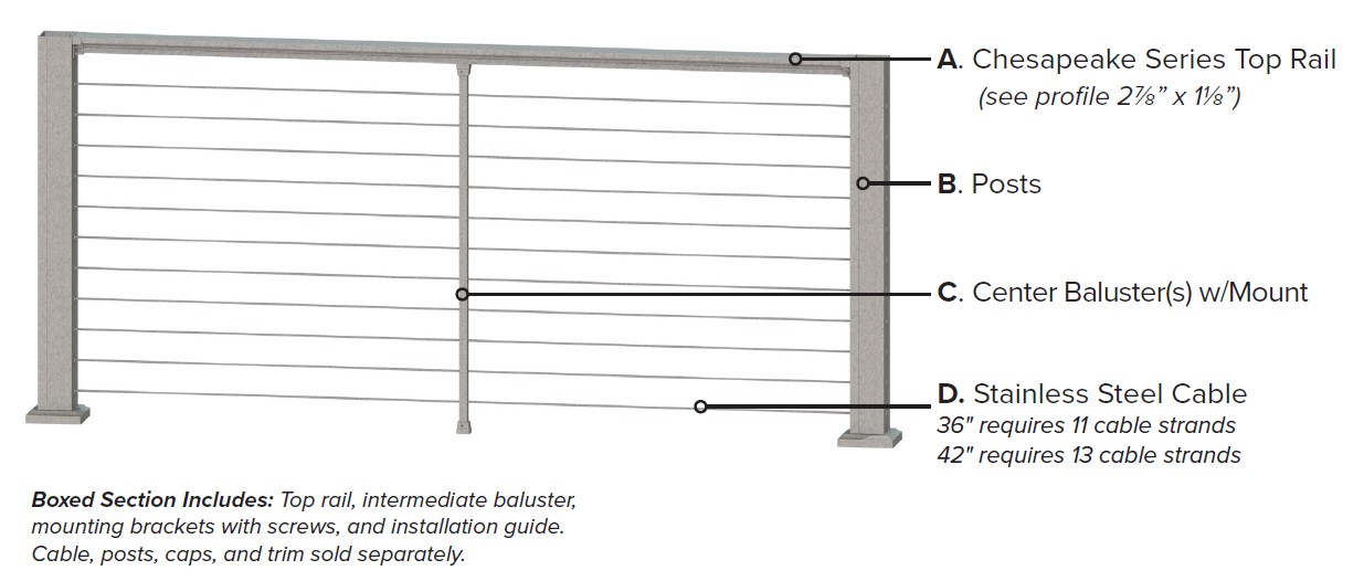 KFR Chesapeake Horizontal Cable Level Section 42" x 8' Tex Bronze