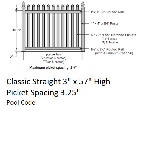 3" Classic Straight Picket Fence 57" H x 8' W Section Almond, Pool Code