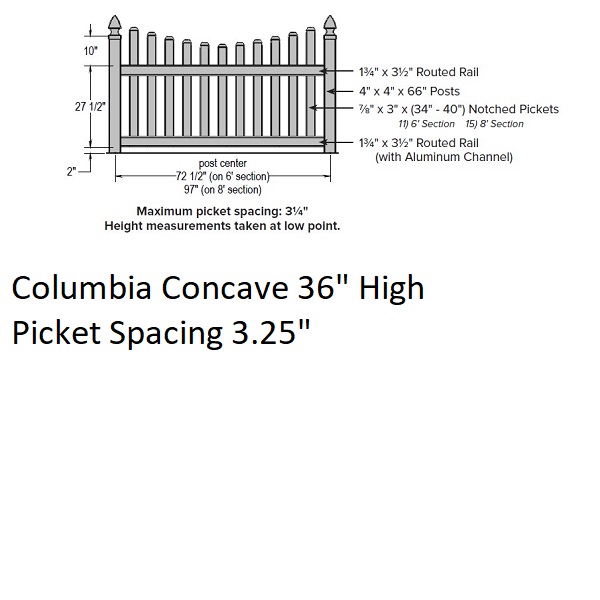 SOP 3" Columbia Concave Picket Fence 3' H x 6' W Section Almond