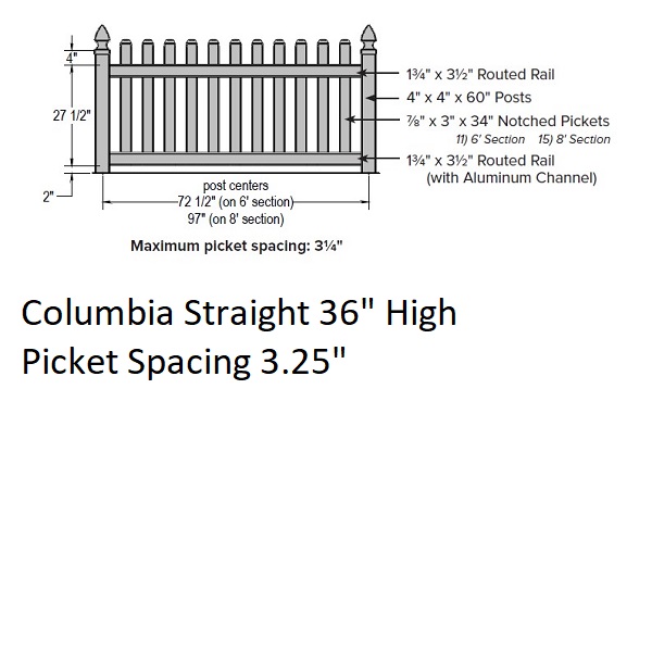 3" Columbia Straight Picket Fence 3' H x 6' W Section White