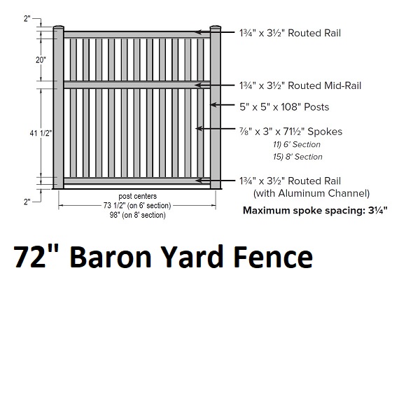 SOP Baron Yard Fence 6' H x 8' W Section White