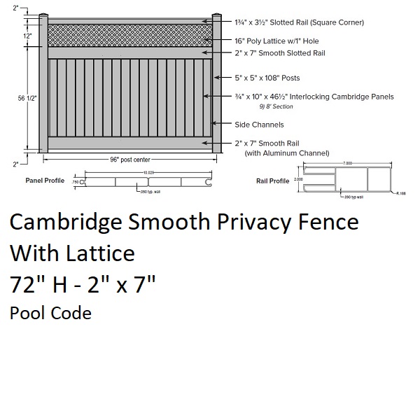Cambridge Smooth Privacy Fence 6' H x 8' W Section w/Lattice Clay - Pool Code